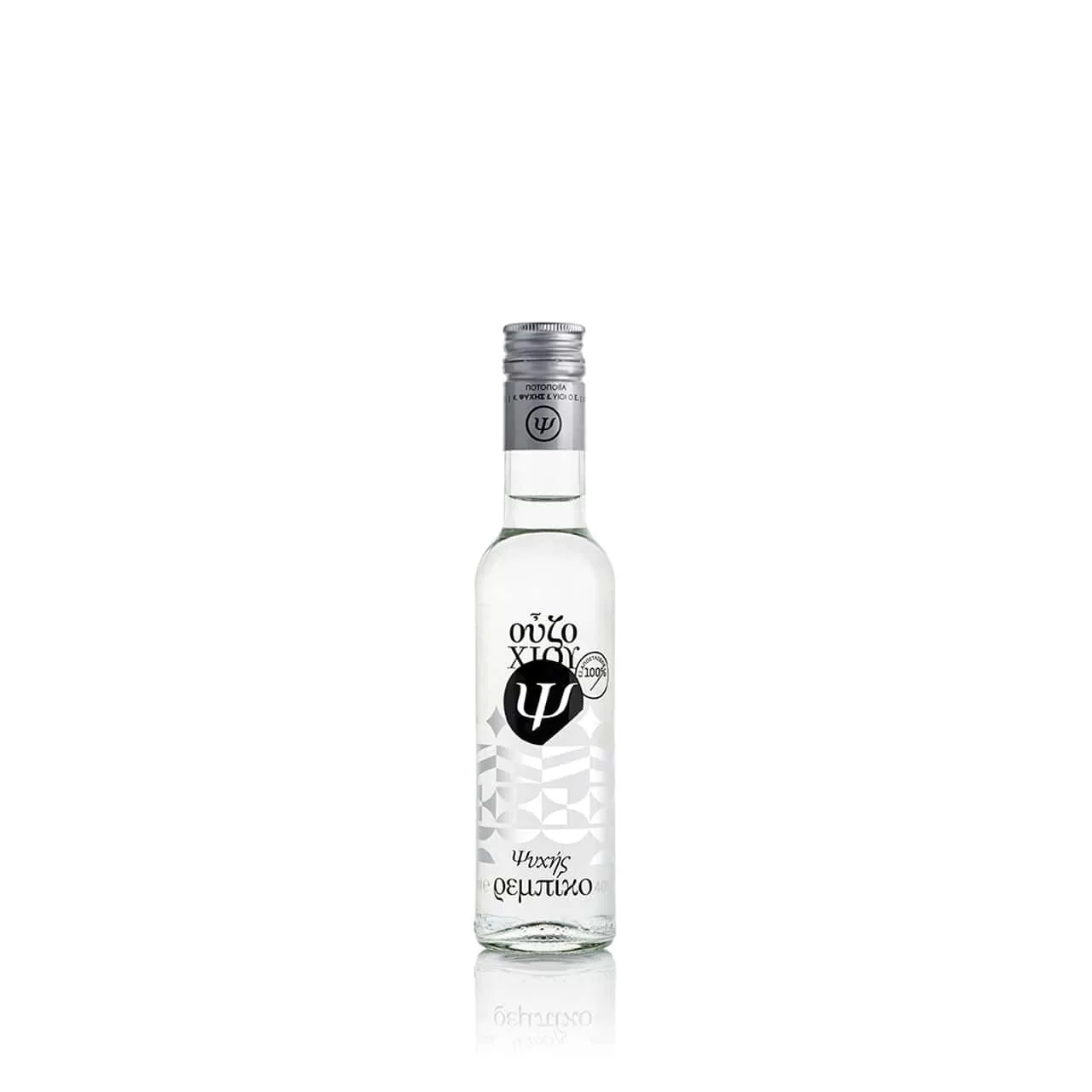 Chios Psychis Ouzo “Rempiko”. Took its name from the traditional copper still, as it is called in the Chian dialect, its aroma from the anise and the careful distillation, the decoration of its bottle from the passion of the traditional craftsman of the island, when he paints the walls with the “Sgraffito” style, and its character from the love and care of the Chian distiller.
